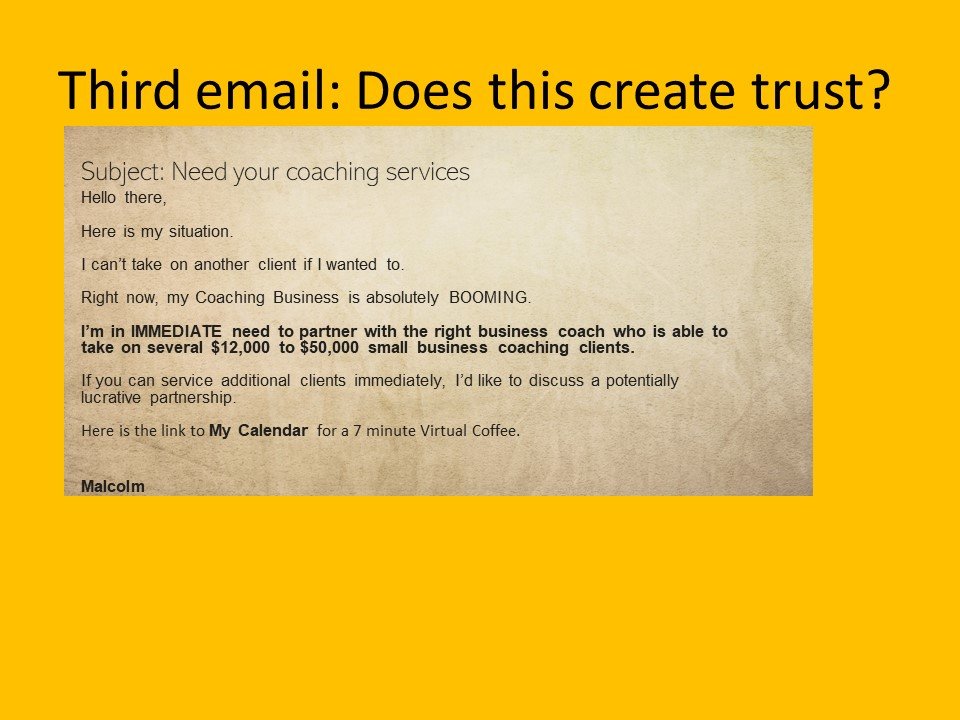 They think my name is “there”. The message is not personalized which suggests that this message was sent to many – dozens, hundreds or thousands of potential coaches or consultants.
